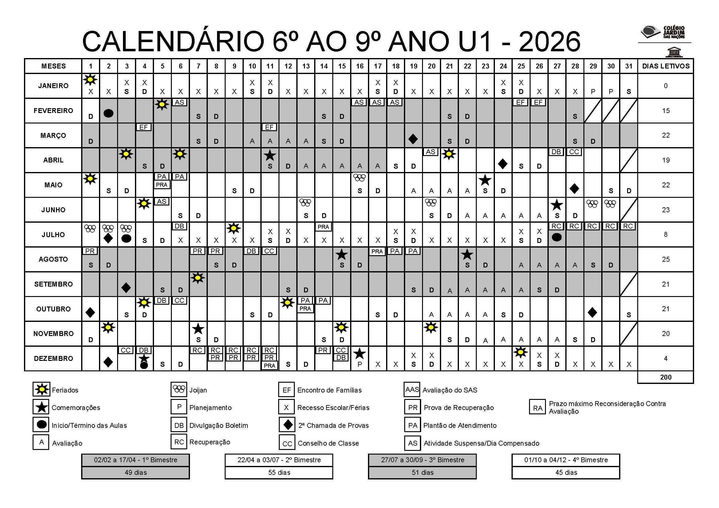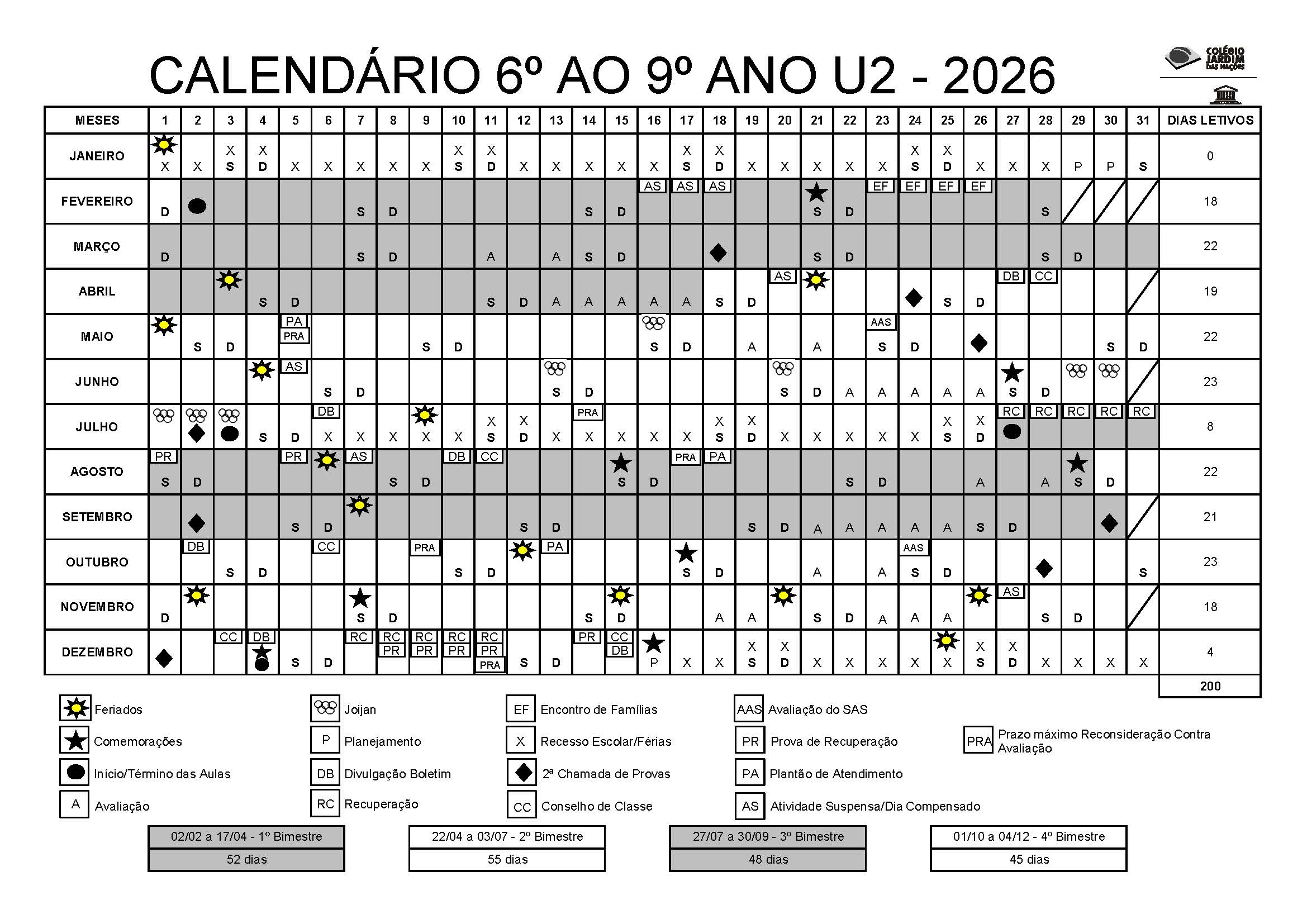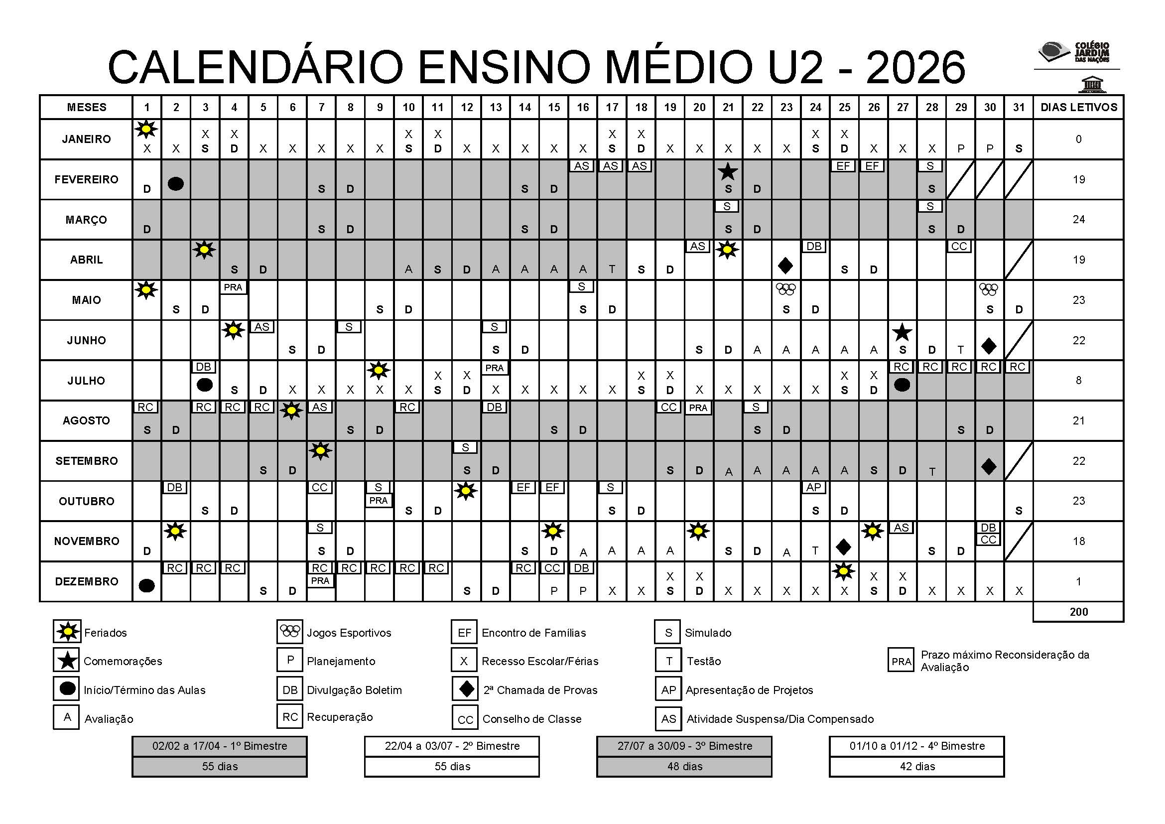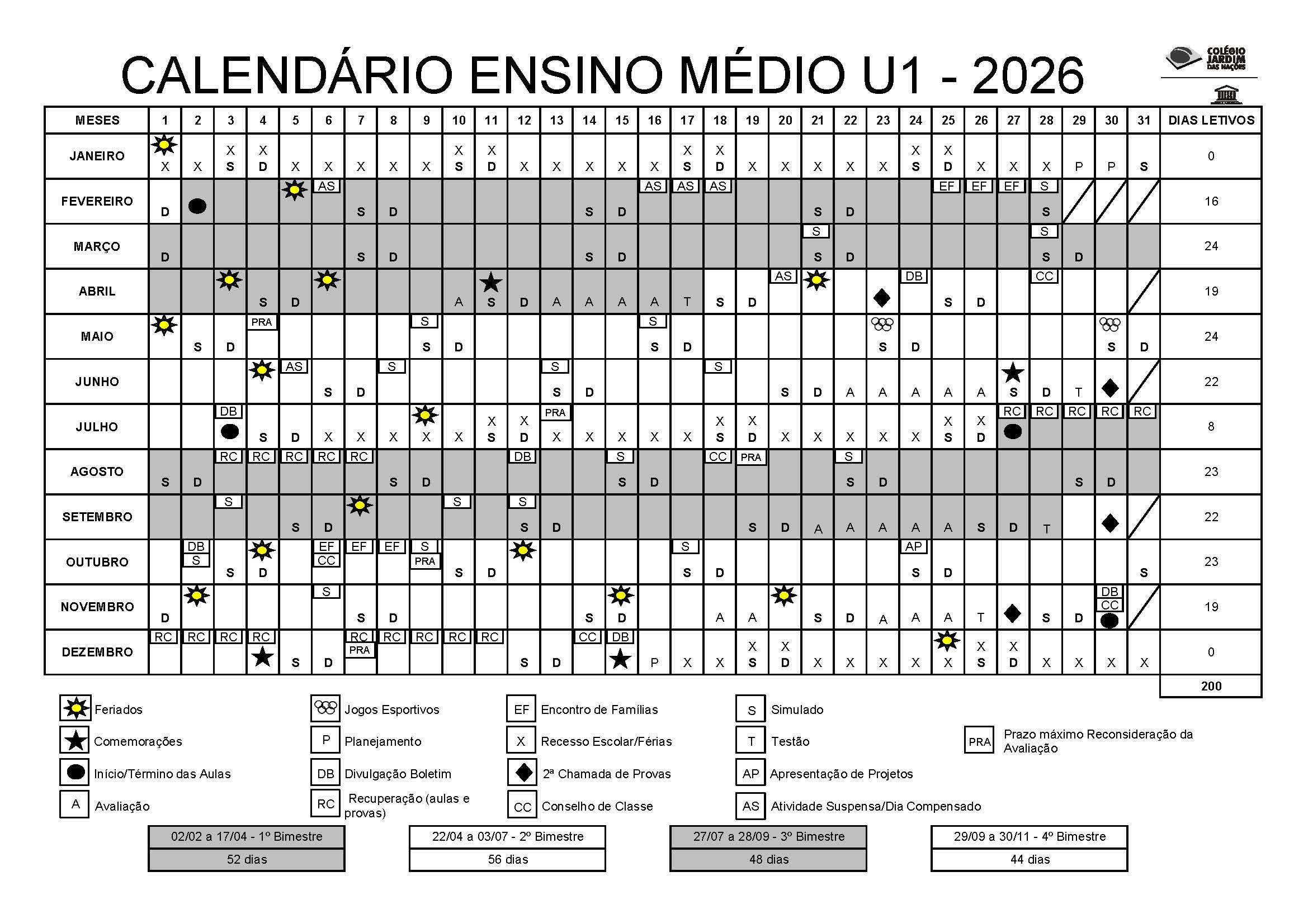 Cronograma de Provas Bimestrais, Testão e Plantão de Dúvidas 4º Bimestre